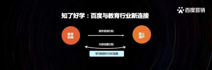 知了好學提供教育O2O平臺,教育機構以門店為單位入駐,以距離優先排序展現,滿足用戶選擇周邊的教育產品的需求。除此之外,百度上還有大量對于教育內容的需求,而通過知了好學這個平臺,我們的教育機構就可以實現,應用戶需求發布內容,多場景觸達,雙向溝通。知了好學整合生態流量,深耕教育行業內容流量,由入駐機構自己生產內容,百度提供免費分發,實現多場景展現;趦热萆a&服務閉環數據后臺的搭建及在線教育精選商城的打造,通過門店會員的方式解決成本問題,通過內容+服務雙通道建設的解決渠道拓寬問題,通過精品內容建立信任感,解決品宣問題,全面解決教育品牌營銷獲客痛點。