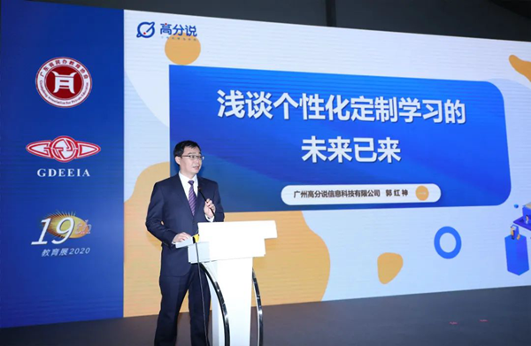 郭紅神董事長首先向廣東省民辦教育協會與廣東省教育裝備行業協會對高分說公司實力的肯定表示感謝,并提出將會充分發揮本公司品牌擁有的高品質內容優勢和個性化學習資源,充分運用現代人工智能與大數據技術于教育當中,促進教育情景化、個性化和國際化,用優質的資源傳遞溫暖,為此次教育盛會的舉行貢獻出自己的力量。