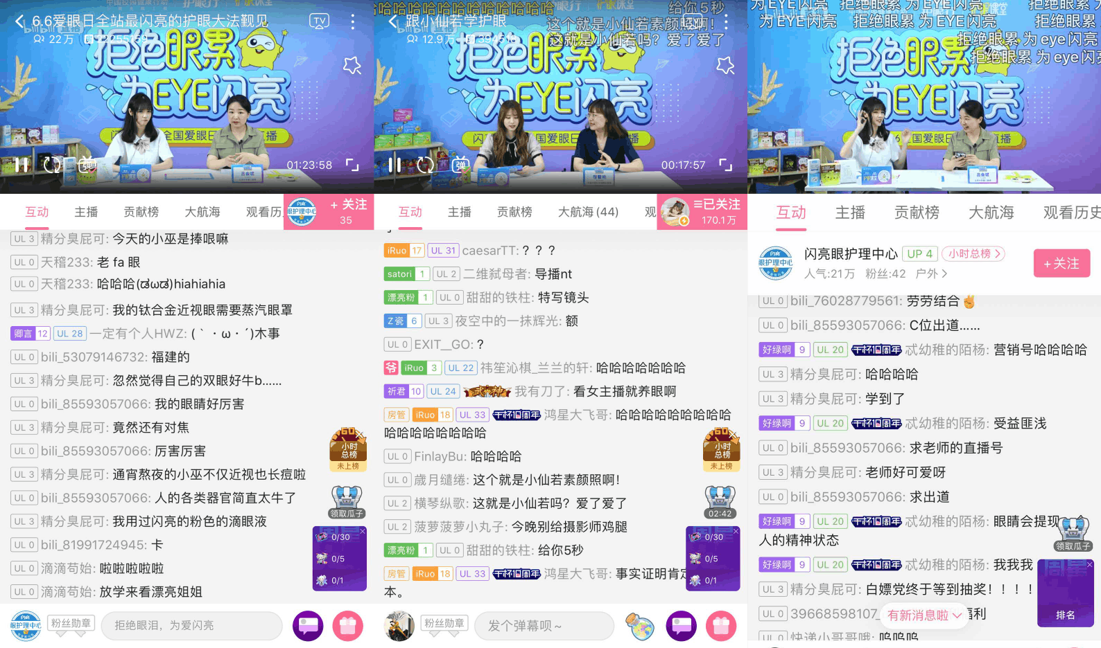 2020年疫情影響下,學生居家網課數量增多,閃亮品牌適應疫情環境試水直播科普,在愛眼日聯合B站開展“閃亮護眼行”專家科普直播活動。此次科普直播選擇在B站進行推廣,目的也是近距離接觸年輕群體,實現活動目標受眾和直播觸達人群的高度吻合,實現活動投放的高精準,力求產生1+1>2的傳播效果。與此同時,用戶也可以通過B站特有的彈幕形式參與直播互動,和品牌近距離,在雙方共同營造輕松、趣味的氛圍中,實現寓教于樂的公益傳播價值。
