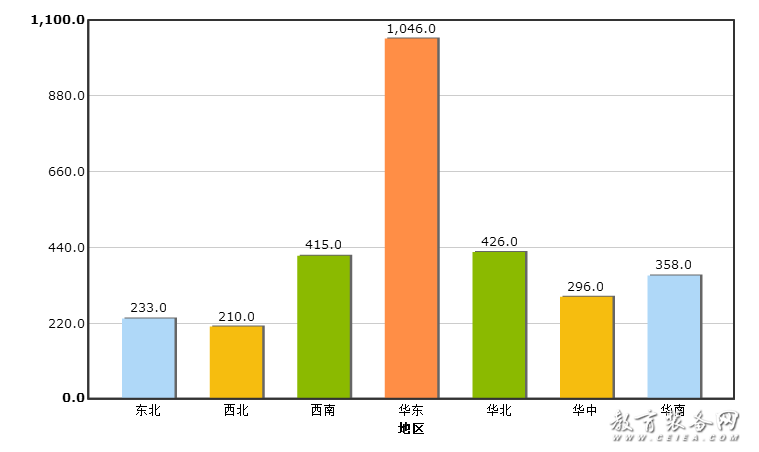 圖6 1月份教育裝備中標信息區域統計圖(單位:條)