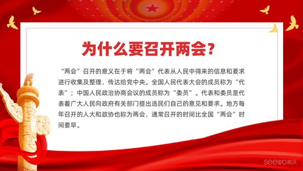 高質量黨建活動,從更系統的文化傳遞做起。希沃智屏特別針對兩會新增了海報與政策宣導性資料,并根據國家熱點大事以及政策頒發等節點進行及時更新。