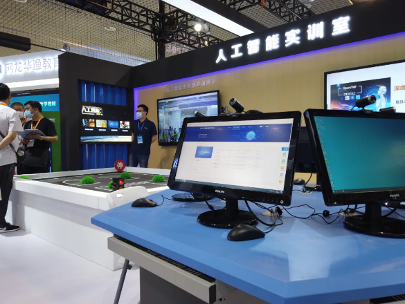 本次展會,飛利浦與藍鴿集團以教育軟硬件相結合的方式,通過人工智能實訓區、多功能網絡教室、AI智慧教室、AI一體化英語考試輔導系統、信息數據指揮中心等多個應用場景解決方案的打造,全方位展示智能商顯與教育軟件系統所帶來的智慧教育解決方案,以創新科技改變傳統教學模式,助力構建現代化“互聯網+教育”新生態。