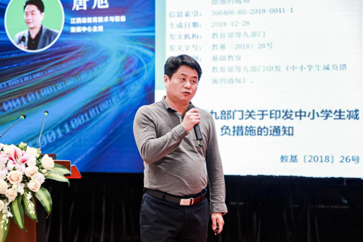 江西省現代教育技術與裝備發展中心主任唐旭做了題為《“智慧作業”——作業數據驅動下的大規模因材施教探索》的主題報告,詳細介紹了江西省中小學全面推廣使用智慧作業的情況。智慧作業不改變學生使用練習冊作答的習慣,通過讓老師使用智能筆批改作業,再由大數據分析學生的學習情況,主動推送錯題微課,有利于實現個性化教學、促進教育均衡發展、推動減負政策落地等。