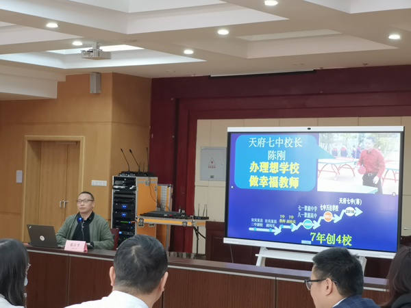隨后,張江平校長對天府七中的建校理念、建校過程、教育成果和經(jīng)驗做了生動的分享。