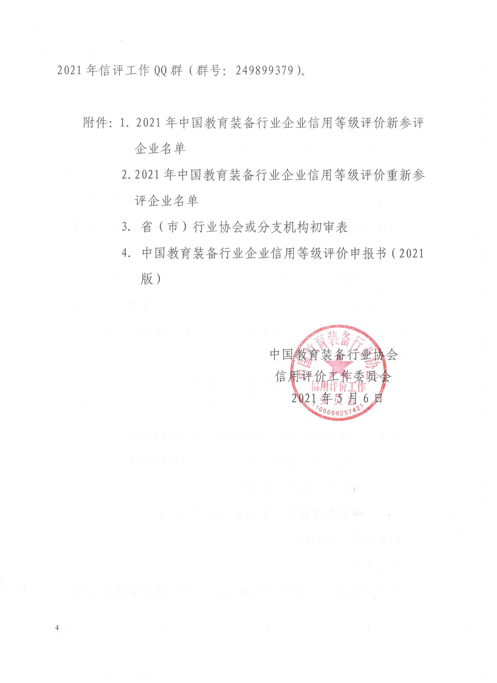 現將2021年教育裝備行業企業信用等級評價工作相關具體事項通知如下: