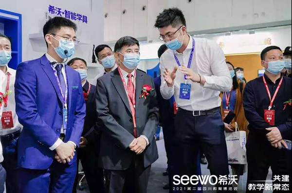 在展會現(xiàn)場,省裝備協(xié)會領(lǐng)導(dǎo)一行參觀了希沃展位。在體驗希沃產(chǎn)品、方案,并了解了其在四川全省的落地應(yīng)用情況后,領(lǐng)導(dǎo)們對希沃的產(chǎn)品及發(fā)展現(xiàn)狀表示了高度肯定。