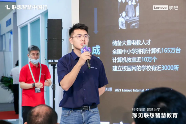 聯想集團中國區商用大客戶事業部智慧教育總經理金鑫在展區現場分享聯想智慧教育戰略,介紹了聯想全景解決方案。作為智慧教育的實戰派,聯想始終致力于以新IT賦能教育變革,以“端、邊、云、網、智”技術架構打造下一代學習空間,同時賦能新型教學和教研,應對操作系統多樣化、應用多樣化、工具多樣化等新挑戰。