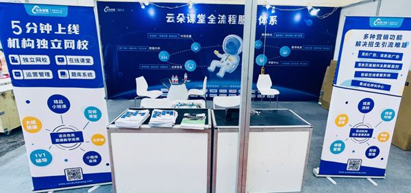 云朵課堂攜全套在線教育解決方案亮相展會現場,現場為參展人員充分展示網校搭建、直播課程、錄播課程、面授課程、題庫、問答社區(qū)、機構運營管理、數據分析等多方面的產品服務,打造完整的產品矩陣,用技術創(chuàng)新教育,推進促成校企教育裝備應用合作,拓展新市場。