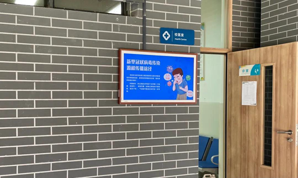 而校醫務室門口的云屏,則展示與衛生健康相關的內容,每每學生經過校醫室,都能在不經意間掌握一個健康小常識,養成良好的衛生習慣,自覺維護身心健康。