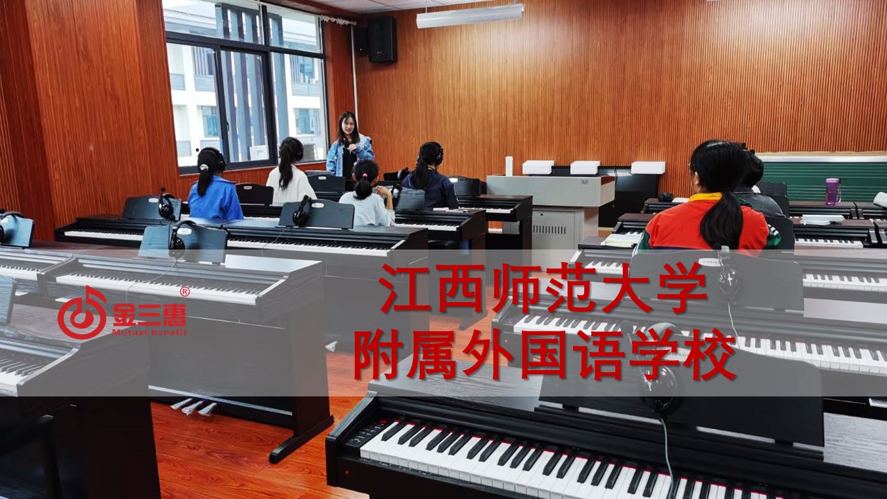 江西師范大學附屬外國語學校的電鋼琴教室正式開始使用,本校數字化音樂教室由北京金三惠科技有限公司負責提供、安裝、培訓。
