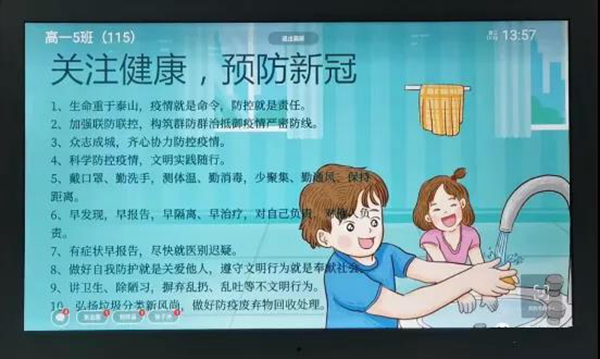 通過班牌,該校實(shí)現(xiàn)了學(xué)校信息高效發(fā)布、人臉識(shí)別考勤簽到、防疫知識(shí)快捷宣傳、優(yōu)秀試卷展示、學(xué)生可與家長隔空對(duì)話等目標(biāo)。