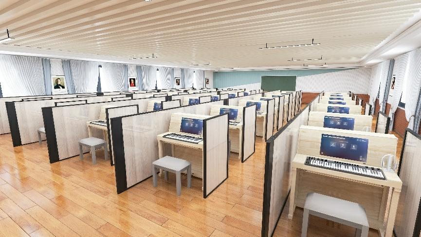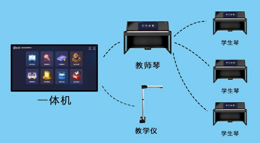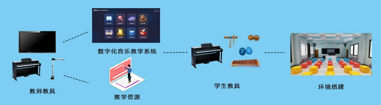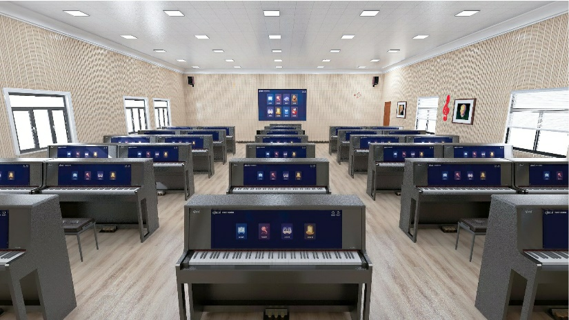 建設內容包括:教學一體機、數字音樂創客教學軟件(教師端、學生端)、教師用智慧電鋼琴(1018S、1018A、1018C)、學生用智慧電鋼琴,實現教師備課、師生互動、樂器演奏、音樂測評、教學管理、音樂創作創編。