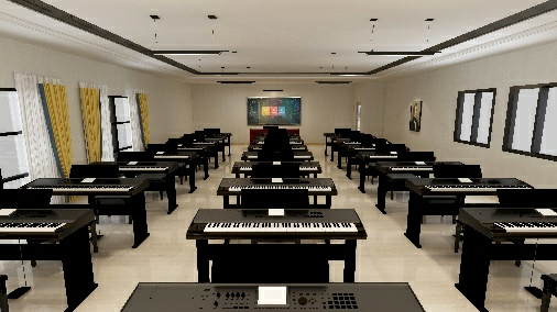教室設計定位主要是面向零基礎的中小學生,重點培養學生對于打擊樂的學習興趣,增加對打擊樂相關知識、內容的了解,配以數字化的音樂教學設備,提高老師的教學效率。