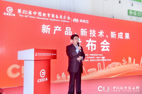 由中國教育裝備行業協會主辦、四川省教育廳、成都市人民政府承辦、各省、自治區、直轄市及計劃單列市教育裝備行業協會協辦的新產品、新技術、新成果發布會在中國西部國際博覽城舉行。中國教育裝備行業協會常務副會長李興植主持發布會。