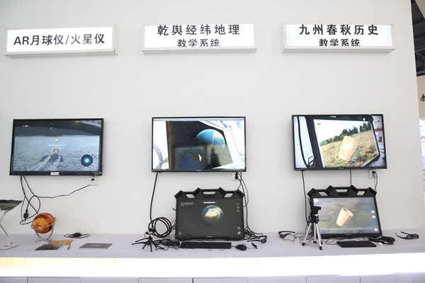 史地教室是羿飛教育的王牌項目,一直以來都備受行業(yè)關(guān)注。此次現(xiàn)場展出數(shù)字歷史沿革系統(tǒng)、互動演示實驗、AR地理沙盤、數(shù)字立體地形、數(shù)字模型、交互式3D多媒體教學(xué)系統(tǒng)等。除此之外還有乾輿經(jīng)緯地理教學(xué)系統(tǒng)、九州春秋歷史教學(xué)系統(tǒng)、以及首次亮相的AR月球儀、AR火星儀、AR夢想地理堂、黍律千秋歷史秤等。