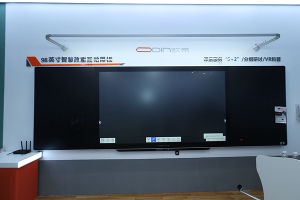 在新品體驗區,歐帝也帶來了令人耳目一新的新一代的四邊紅外記憶黑板,其粉筆板書的雙屏顯示功能和記憶云存儲功能令現場的老師感到驚喜。在傳統課堂中,由于黑板尺寸的限制,老師在板書書寫時,在中間位置寫滿后,會自然的在黑板的左右兩側書寫,而學生則由于座位的角度問題,看不清兩側的板書,以至于不能及時的抄寫板書。這一現象,幾乎是所有經歷過傳統黑板教育師生的共同記憶。