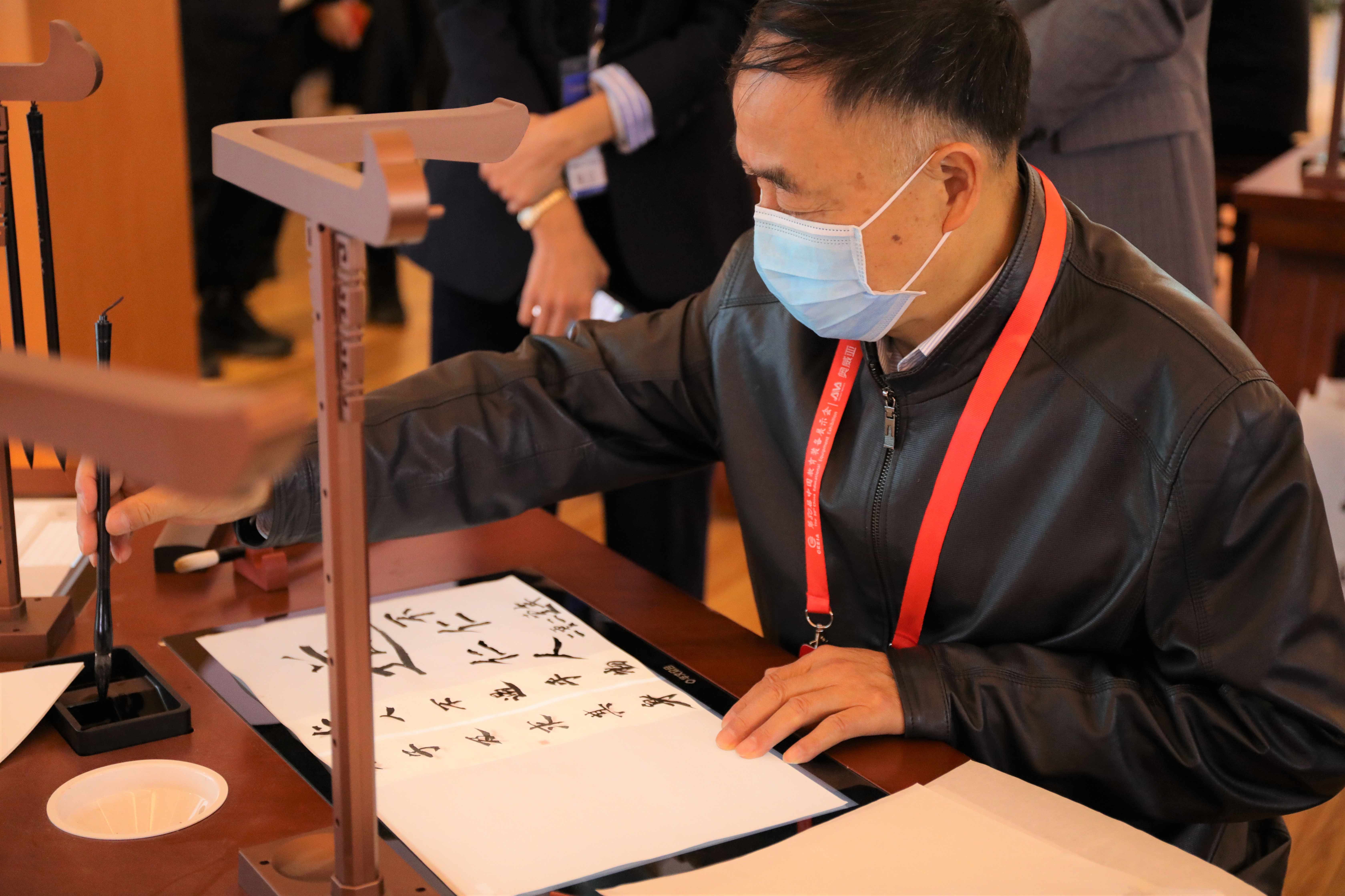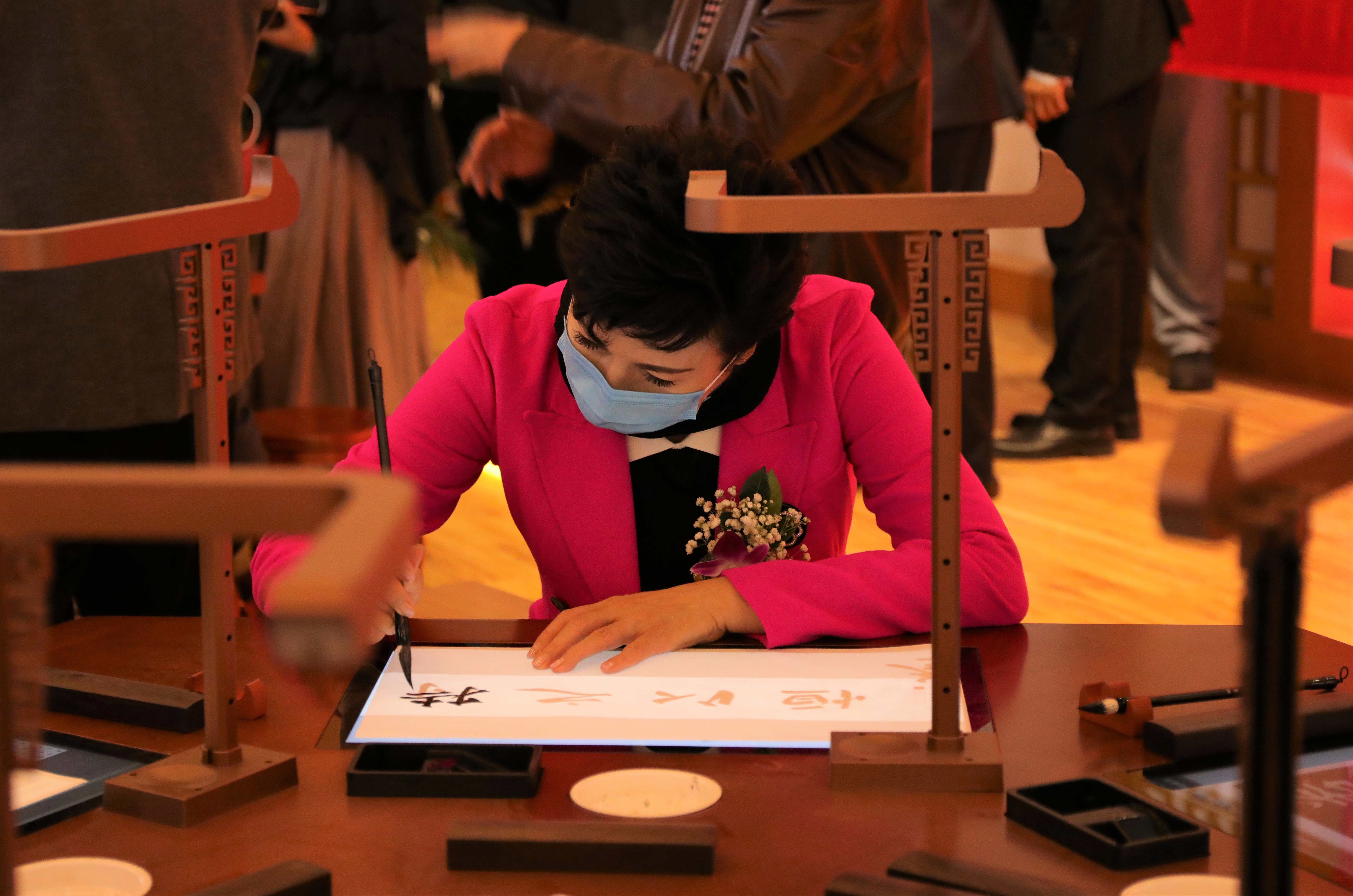 中國少年兒童文化藝術基金會會長、民進中央委員闞麗君體驗智慧書法教室