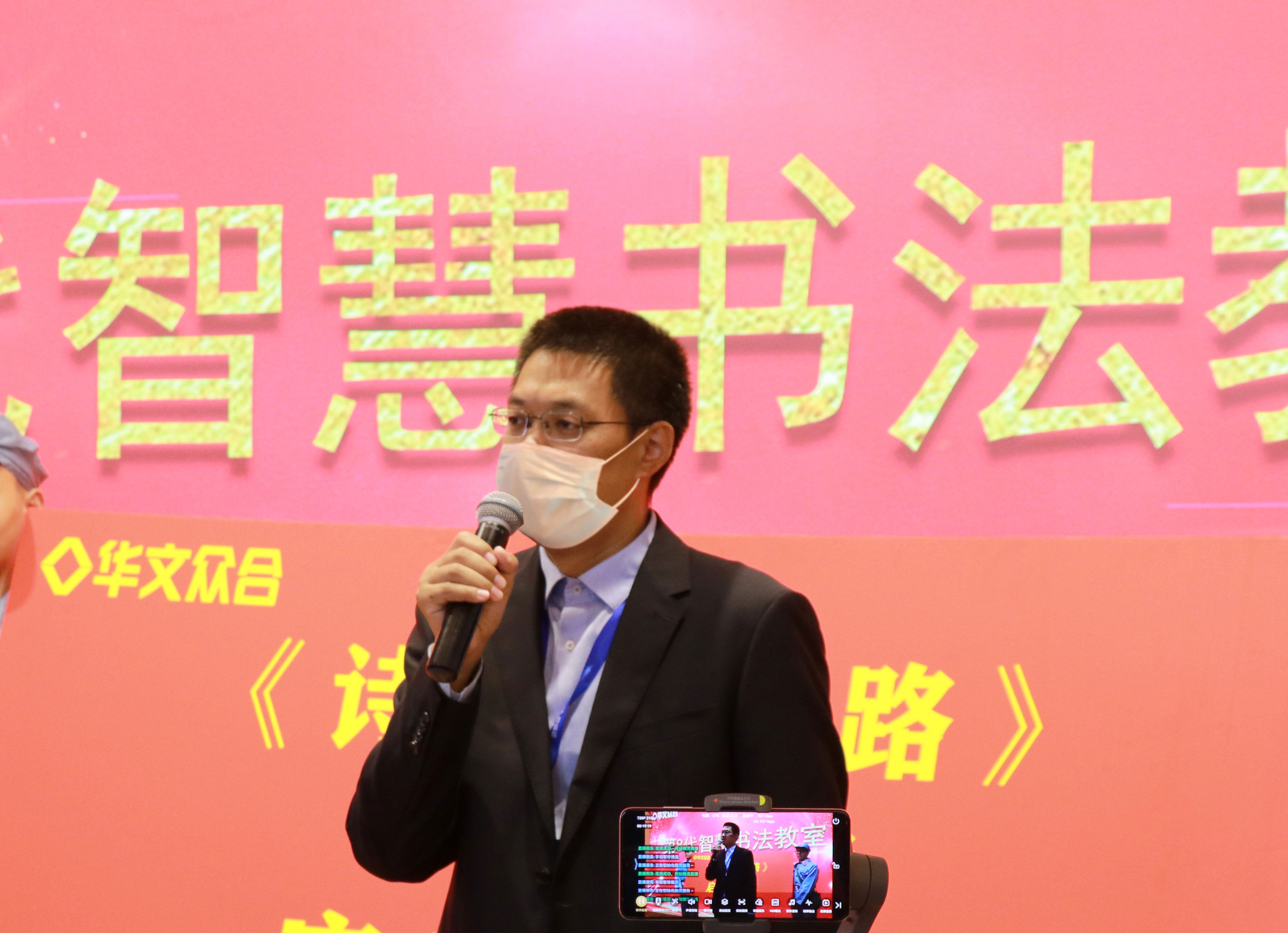 中國教育裝備行業協會副會長李興植,中國少年兒童文化藝術基金會會長、民進中央委員闞麗君,中國教育裝備行業協會未來教育裝備分會理事長葉寶凌,北京市數字教育中心主任武裝與華文眾合董事長向大鳳共同為新產品揭開面紗,宣布“華文眾合第8代智慧書法教室”正式發布。隨后李興植副會長發表講話,對華文眾合智慧書法教育發展的實踐成果表示肯定,同時,認為書法既是我們中華民族的傳統文化,肯定了智慧書法的理念、模式和實施方案,希望廣大教師能夠充分利用信息化的手段,加強學校的現代化教育裝備,全面貫徹新時期黨的教育方針,讓育人責任共同擔當起來。中國少年兒童文化藝術基金會會長、民進中央委員闞麗君發表致辭,書法教育是美育的重要組成部分,作為藝教工程智慧書法指定合作單位,華文眾合以嚴謹的態度和精湛的技術真正實現“以師生為本”的教育,助力實現藝教工程智慧書法的全面化、個性化和智慧化。