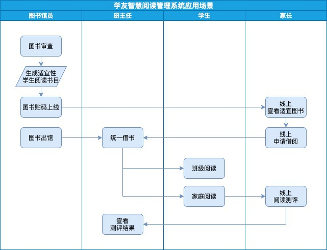 學友智慧閱讀管理系統通過“一書一碼”“一位一碼”等IT技術和區塊鏈技術,記錄和分析學生課外閱讀數據,幫助教師和家長指導學生閱讀,加強師生閱讀成果交流和互動。作為智慧閱讀管理工具,該系統有效賦能中小學校課后閱讀教學和家庭閱讀指導,聚焦于330閱讀課堂和家庭親子閱讀;诮逃俊2019年全國中小學校圖書館(室)推薦書目》和《中小學生閱讀指導目錄(2020版)》,該系統幫助學校、教師和家長著力解決學生“讀什么”“怎么讀”“什么時候讀”和“讀后體會如何”等問題。