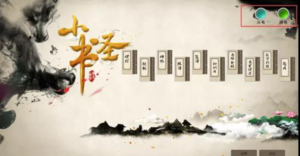 在華文眾合智慧書法教室系統(tǒng)界面,鼠標(biāo)上移至屏幕頂端任意位置,會出現(xiàn)一排快捷菜單,點(diǎn)擊筆洗,會彈出筆洗功能菜單,點(diǎn)擊【允許學(xué)生使用筆洗】,此時(shí),學(xué)生端會出現(xiàn)筆洗控制按鈕。