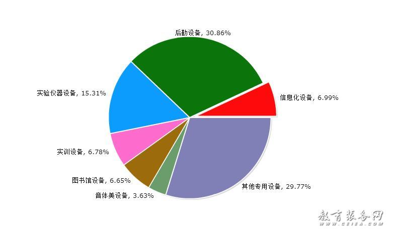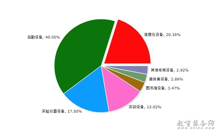 根據(jù)對教育裝備細分的歸納,教育裝備網(wǎng)將教育裝備具體劃分為七大類,即信息化設備(含智能平板、錄播系統(tǒng)、智慧黑板等),后勤設備(含校園基建、安防設備、食堂設備、課桌椅等),實驗儀器設備(含儀器儀表、實驗室平臺等),實訓設備(含實訓系統(tǒng)、實訓設施等),圖書館設備(含借還系統(tǒng)、微型圖書館等),音體美設備(含樂器、體育設施、美術(shù)用品等),其他專用設備(含創(chuàng)客教育、心理健康特教設備等)。