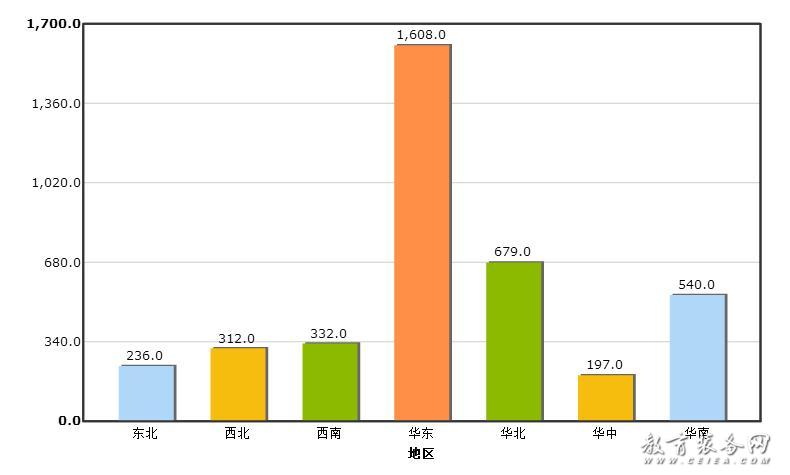 圖6 11月份教育裝備中標信息區(qū)域統(tǒng)計圖(單位:條)