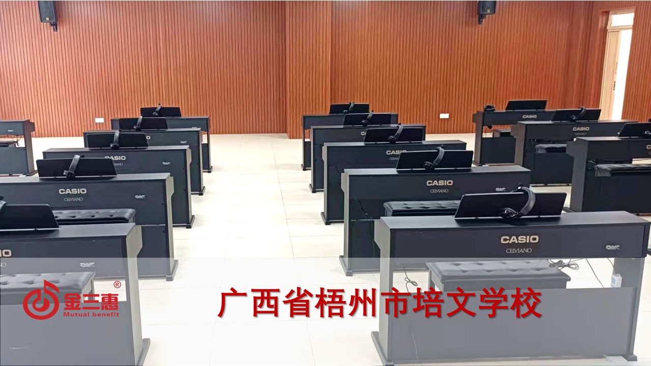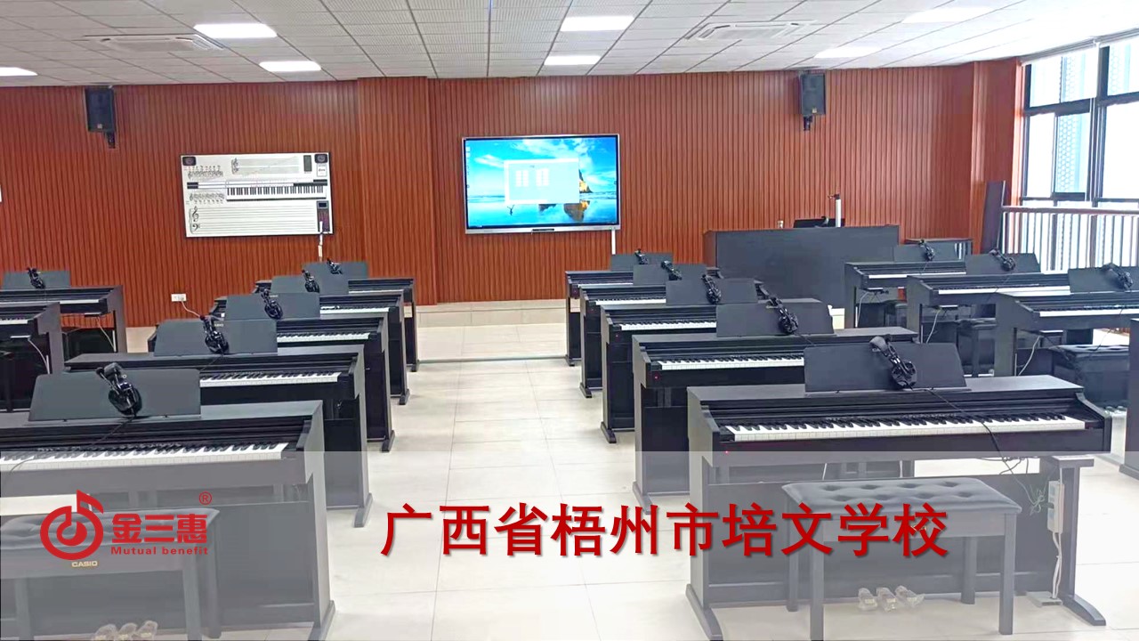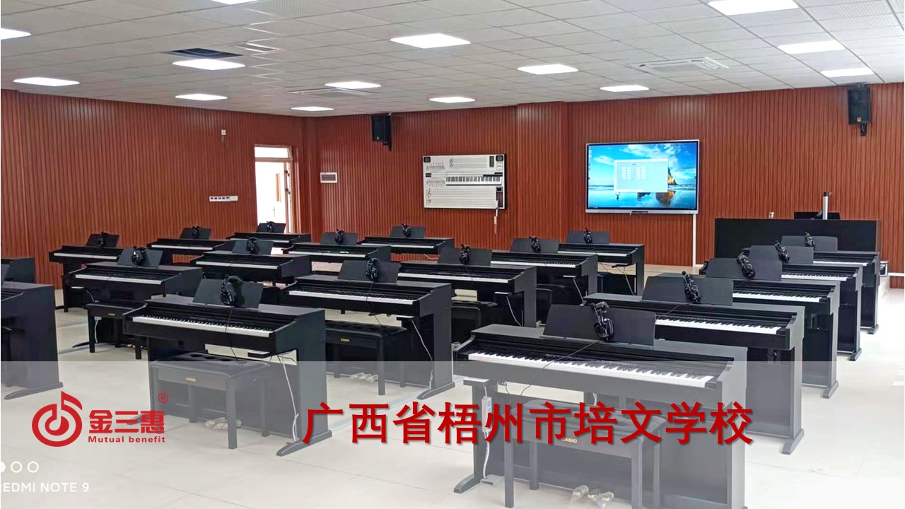 廣西省梧州市培文學校的數字電鋼琴教室正式開始使用,本校電鋼琴教室由北京金三惠科技有限公司負責提供、安裝、培訓。