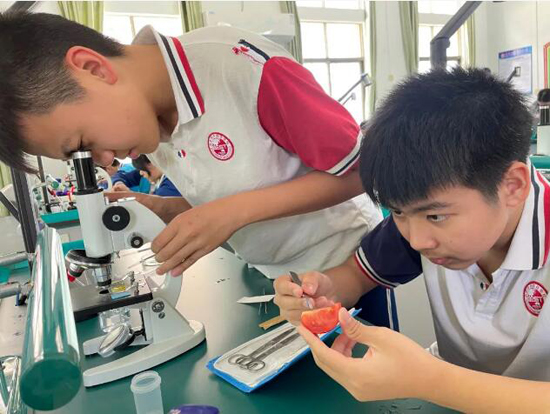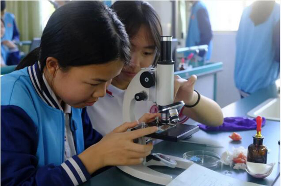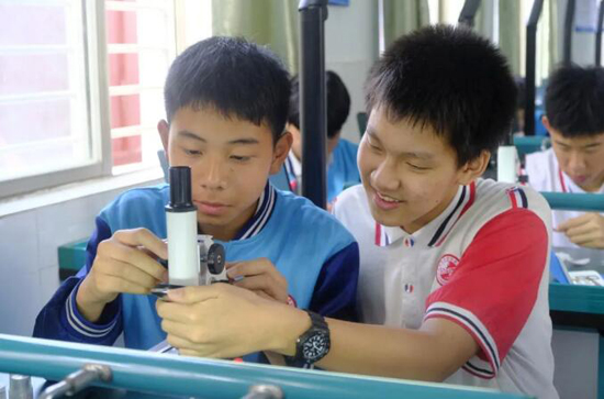 引進(jìn)領(lǐng)先設(shè)備,啟發(fā)學(xué)生創(chuàng)造性以及動(dòng)手實(shí)踐性智慧。物理、化學(xué)、生物通過信息化設(shè)備讓實(shí)驗(yàn)更加貼近生活,讓學(xué)生把所學(xué)的知識(shí)運(yùn)用到實(shí)際中去,培養(yǎng)學(xué)生的觀察、分析能力,提高學(xué)生的科學(xué)素養(yǎng),理論聯(lián)系實(shí)際,讓學(xué)生互相探究學(xué)習(xí),獨(dú)立操作,培養(yǎng)創(chuàng)新與設(shè)計(jì)能力。