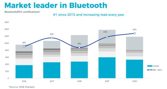 Nordic半導體作為低功耗藍牙技術的領導者,市占率達40%以上,擁有高性能SoC器件、開發工具和參考設計,為廣大的開發者及客用戶提供完備的產品、技術服務。