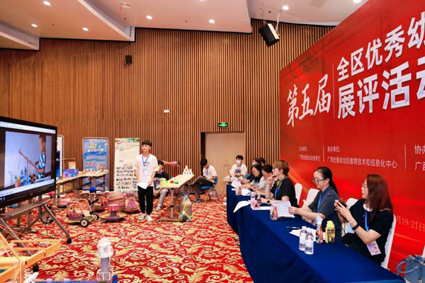為發揚廣大幼兒教師和在校學前教育、幼兒保育相關專業學生設計制作玩教具的積極性和創造性,經過廣泛宣傳發動、層層遴選,15位專家對179件幼兒自制玩教具作品進行現場評選,評出幼兒園組作品一等獎21件、二等獎36件、三等獎41件,院校組作品一等獎6件、二等獎9件、三等獎11件(結果后續將按程序進行公示、公告)。此外,參評作品在現場向公眾開放,參評老師現場講解、展示作品,吸引了來自全區各地眾多老師前來觀摩、交流。