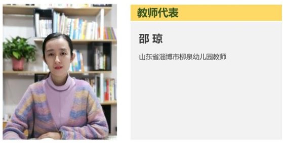 山東省淄博市柳泉幼兒園教師邵瓊作為教師代表進行了題為《幼有所得,師有所獲》的發言:通過參與活動,改變了自己對玩具的認識,開始更加重視讀懂兒童,不斷反思教師在幼兒成長中的作用。只要教師把重心聚焦于孩子,真正做到從心里看見兒童,做兒童的合作者、支持者和引導者,就一定能夠發揮自己的專業能力,助力孩子的健康快樂成長。