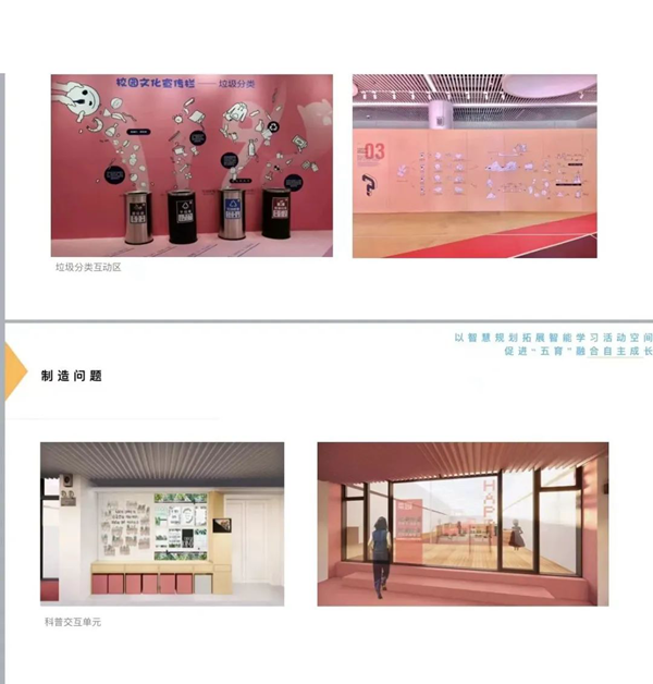 此外,學校還利用庭院出入口的空間,設計了科普交互單元;在各層走廊盡端設置了公益小屋;校園的各層角落中都散落著創意角、問題板等。