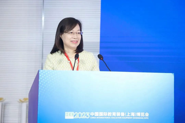 上海市教育委員會教育技術裝備中心黨總支書記兼副主任周齊佩向論壇致辭。