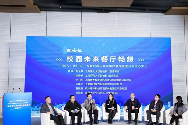 在“未來高校餐飲暢想”微論壇環節中,學校方、設計方、運營方、技術方和學生代表圍繞智慧食堂建設展開對話,共同暢想高校未來餐廳的發展。