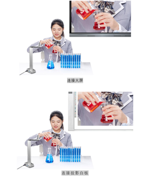 1300萬像素,極致4K畫質(zhì)。通過HDMI與USB接口連接顯示設(shè)備,輕松實現(xiàn)雙屏聯(lián)動,老師在實驗教學(xué)演示時可一鍵錄像或拍照,方便快捷。