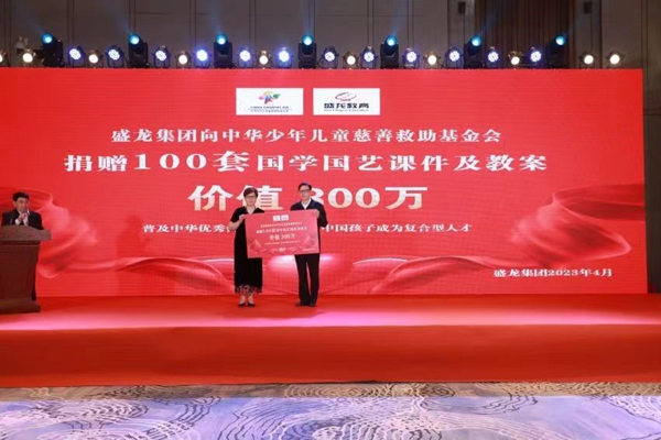 大會期間,愛心企業家,盛龍集團創始人董倩為中華兒慈會捐贈了價值300萬元的教育產品,并分享了盛龍教育體系。盛龍集團同時揭牌,成為生態校園建設實踐基地。