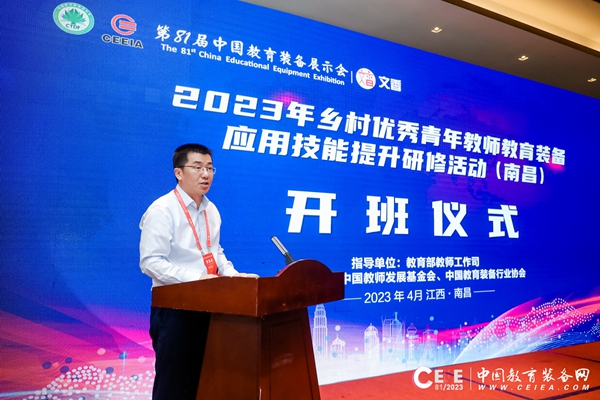 4月21日上午,2023年鄉村優秀青年教師教育裝備應用技能提升研修活動開班儀式在第81屆中國教育裝備展期間舉行。本次活動由教育部教師工作司指導,中國教師發展基金會、中國教育裝備行業協會主辦,來自福建、江西、湖北、湖南的200余位鄉村優秀青年教師共同參加。
