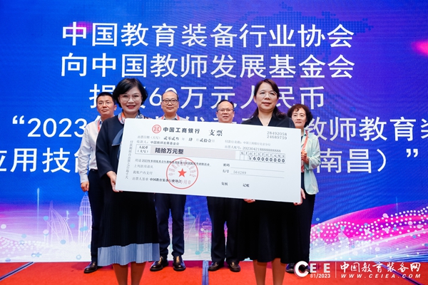 當天,中國教育裝備行業協會向中國教師發展基金會捐贈60萬元資金,啟動本次研修活動。北京文香信息技術有限公司、上海東方教具有限公司、北京威成亞實驗室設備有限公司、山東建榮教學設備有限公司、斯沃德教育科技股份有限公司、北京東方中科達科技有限公司、廈門立達信照明有限公司、北京世紀超星信息技術發展有限責任公司等8家協會會員單位也向本次研修活動捐資捐物,奉獻愛心。