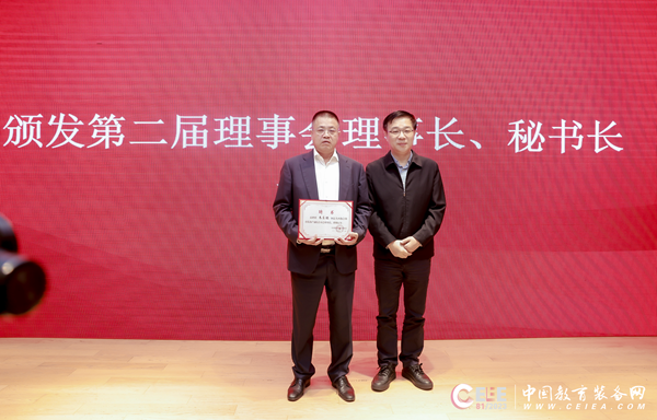 按照《中國教育裝備行業協會章程》《中國教育裝備行業協會分支機構管理辦法》等相關規定,大會選舉產生了產融分會第二屆理事會理事、副理事長及副秘書長;選舉朱良聰為產融分會第二屆理事會理事長、劉二潮為第二屆理事會秘書長。中國教育裝備行業協會副會長夏國明在大會現場向新任理事長朱良聰頒發了聘書。
