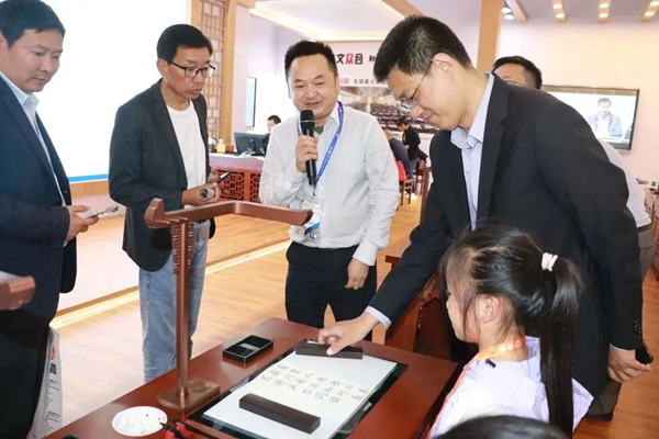 展會(huì)前夕,在江西省教育技術(shù)與裝備發(fā)展中心、江西省教育廳教學(xué)教材研究室、中國(guó)教育裝備行業(yè)協(xié)會(huì)未來(lái)教育裝備分會(huì)主辦的“教育新技術(shù)與課堂應(yīng)用融合實(shí)踐成果交流”活動(dòng)中,華文眾合作為書法教育裝備領(lǐng)軍品牌,走進(jìn)南昌市紅谷灘區(qū)騰龍學(xué)校,展示智慧書法教育裝備前沿科技,并向南昌市紅谷灘區(qū)騰龍學(xué)校捐贈(zèng)價(jià)值二十余萬(wàn)元的智慧書法教學(xué)軟件系統(tǒng),助力學(xué)校書法教學(xué)現(xiàn)代化發(fā)展。