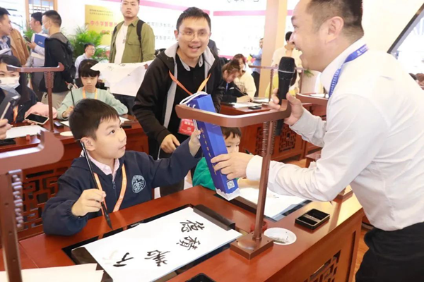 現(xiàn)場(chǎng)觀眾體驗(yàn)書法藝術(shù)魅力