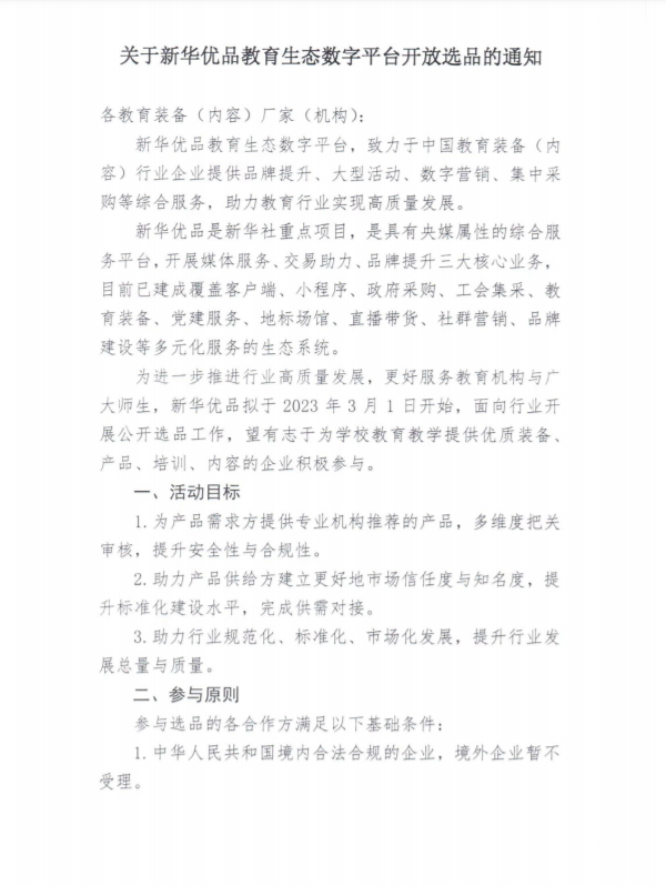 關(guān)于新華優(yōu)品教育生態(tài)數(shù)字平臺(tái)開放選品的通知