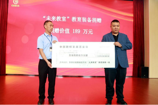 活動(dòng)上,中國(guó)教育裝備行業(yè)協(xié)會(huì)未來(lái)教育裝備向中國(guó)發(fā)展基金會(huì)捐贈(zèng)總價(jià)值189萬(wàn)元“未來(lái)教室”教育裝備,中國(guó)發(fā)展基金會(huì)將捐贈(zèng)裝備轉(zhuǎn)贈(zèng)紅谷灘區(qū)騰龍學(xué)校。隨后,騰龍學(xué)校為鼎力支持此項(xiàng)目的各協(xié)辦企業(yè)頒發(fā)“未來(lái)教育”優(yōu)秀貢獻(xiàn)獎(jiǎng)證書(shū)。