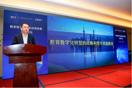 在論壇的主旨報告環(huán)節(jié),李永智分享了教育數(shù)字化轉(zhuǎn)型的戰(zhàn)略構(gòu)想與實踐路徑,他表示,教育數(shù)字化轉(zhuǎn)型是新時代技術(shù)進步和生產(chǎn)力發(fā)展的必然,真正高質(zhì)量的教育應(yīng)當是適應(yīng)學生的教育。運用數(shù)字技術(shù),數(shù)據(jù)驅(qū)動因材施教,在享有均等選擇機會基礎(chǔ)上,為每個學生提供適合其本人的教育并指導其實現(xiàn),是數(shù)字技術(shù)獨有優(yōu)勢能力的展現(xiàn),也是教育數(shù)字化轉(zhuǎn)型下更高質(zhì)量教育公平的核心要義。