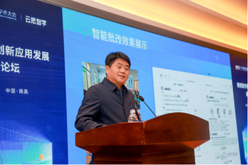 唐旭就江西打造智慧作業(yè)生態(tài)圈的創(chuàng)新實踐進行了分享。他認為,作為基礎(chǔ)教育的“神經(jīng)末梢”,作業(yè)是撬動教育質(zhì)量的支點,是落實雙減政策的數(shù)據(jù)基底,他以作業(yè)為切口,重點介紹了AI批改技術(shù)助推教育數(shù)字化轉(zhuǎn)型的實踐,以技術(shù)驅(qū)動教育核心場景變革,助力精準教學,提高教學效果,推動教育高質(zhì)量發(fā)展。