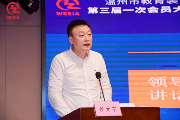 侯元東主任說受朱景高副局長委托,代表溫州市教育局,對協會新一屆理事會領導班子的產生和陳繼權會長的連任表示祝賀。他指出,溫州教育裝備行業協會在數字化轉型和創新發展方面做出了貢獻,為五育并舉,為提升教育質量和溫州經濟發展作出了重要貢獻。同時,他提出了協會新一屆理事會應加強對教育改革的研究、樹立責任意識、加強研發和創新、以及加強自身能力的建設等幾點建議。