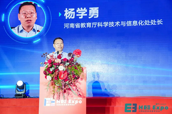 楊學(xué)勇在致辭中表示,近年來(lái),新一輪科技革命和產(chǎn)業(yè)變革深入發(fā)展,數(shù)字化、網(wǎng)絡(luò)化、智能化、賦能經(jīng)濟(jì)社會(huì)發(fā)展的作用凸顯。河南省委提出兩個(gè)確保,實(shí)施“數(shù)字化轉(zhuǎn)型戰(zhàn)略”在內(nèi)的十大戰(zhàn)略,并把實(shí)施創(chuàng)新驅(qū)動(dòng)、科教興省、人才強(qiáng)省戰(zhàn)略作為十大戰(zhàn)略之首,這都給教育資源保障工作帶來(lái)了新的機(jī)遇和挑戰(zhàn)。本次論壇的主題是教育數(shù)字化暨融合創(chuàng)新,體現(xiàn)了政治站位和學(xué)術(shù)敏感,突出教育實(shí)踐和路徑創(chuàng)新,面向教育現(xiàn)代化高質(zhì)量建設(shè)和高水平實(shí)踐。過(guò)去幾年河南教育資源保障工作同步方面優(yōu)化增長(zhǎng),建配基礎(chǔ)標(biāo)準(zhǔn)顯著提高,營(yíng)運(yùn)模式不斷革新,服務(wù)教學(xué)的不斷深化,支撐了教育的高質(zhì)量發(fā)展,教育資源保障體系不斷完善,生態(tài)環(huán)境持續(xù)向好,質(zhì)量效益大幅提升,全國(guó)影響力顯著增強(qiáng)。