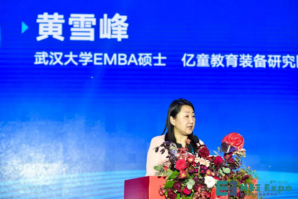 武漢大學EMBA碩士、億童教育裝備研究院副院長黃雪峰出席論壇并致辭。她表示,近幾年我國的學前教育正朝著普及普惠安全優(yōu)質的方向快速進步。去年2月份,教育部頒發(fā)了《幼兒園保育教育質量評估指南》,這標志著我國學前教育進入了高質量發(fā)展的新階段。幼兒園保育教育質量的提升離不開優(yōu)質的教育裝備,也可以說,優(yōu)質的教育裝備是我國幼兒園孩子的教科書,在這樣的背景下,河南省緊跟國家形勢,召開本次論壇具有非常深遠的意義。