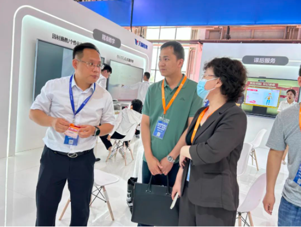 天喻教育吉林省負責人郭鑫為吉林省教育廳發展規劃處高斌處長講解教育大數據平臺作為“數據心臟”打通教育業務系統間的數據壁壘,使數據互聯互通;作為“計算大腦”,為業務系統提供深度分析能力,發揮數據價值。