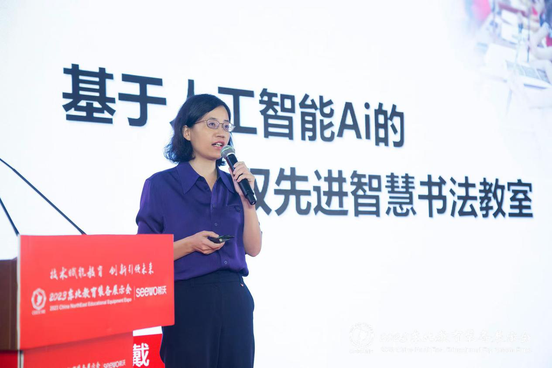 北京華文眾合科技有限公司董事長助理戴敏作《基于人工智能AI的雙先進智慧書法教室》報告